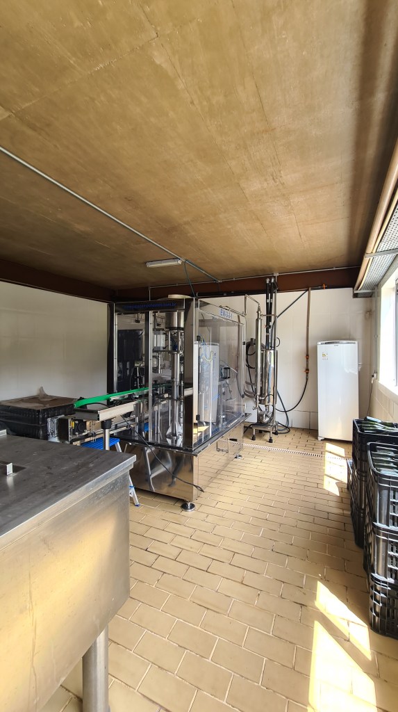 O espaço conta também com uma cave, um espaço subterrâneo, sem iluminação externa, utilizado para a maturação de cervejas de guarda. Por lá, tinha a Bière de Garde guardada a 5 e 7 anos. Humm.