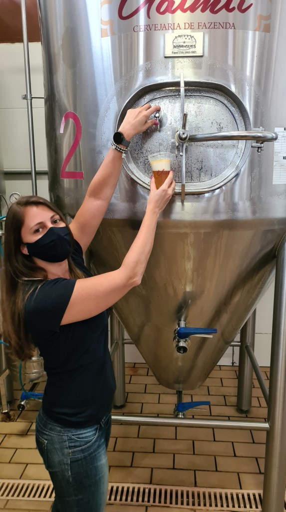 Neste dia em que estivemos lá, os tanques de American Pale Ale e IPA estavam com a cerveja pronta, fresquinha e liberada para degustação. As duas, de excelente qualidade! Pensa na experiência de poder você mesmo tirar aquela cerveja fresquinha direto da torneira dos fermentadores? Isso não tem preço!
