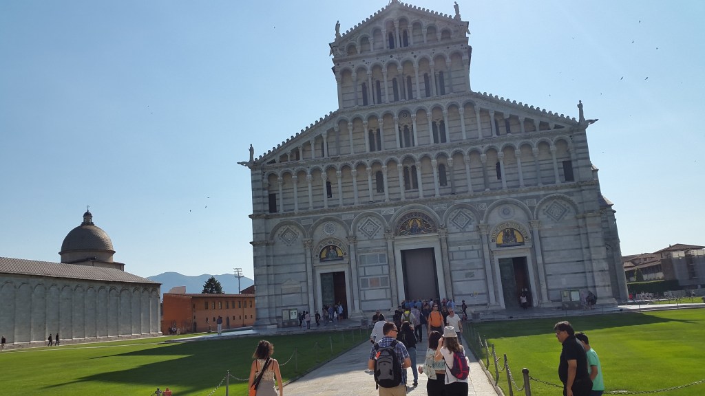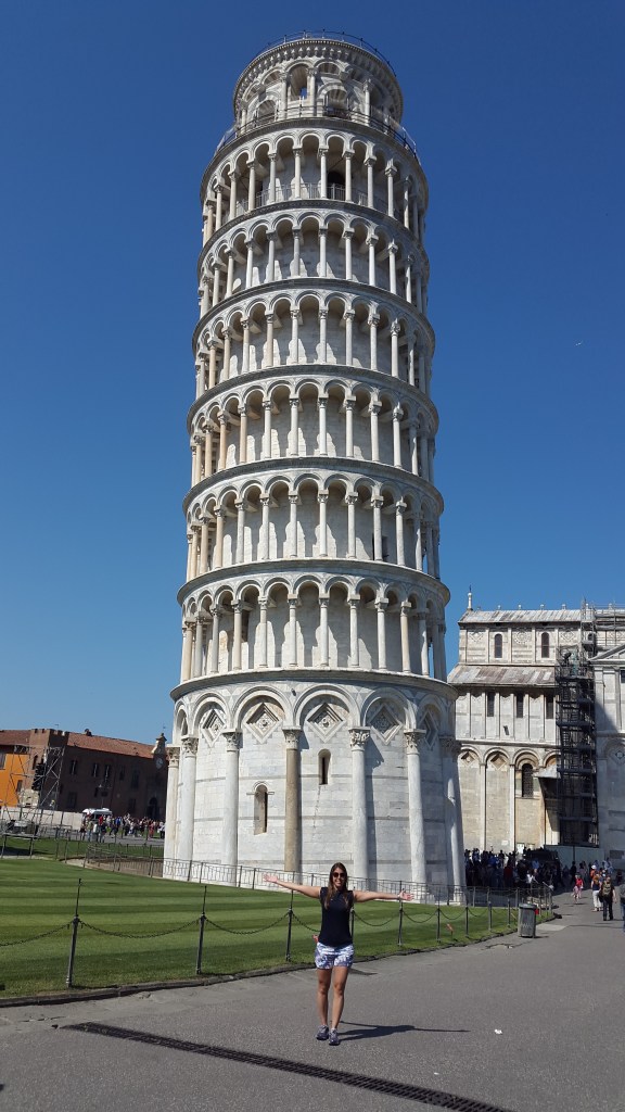 Eu acho difícil expressar a alegria que eu fiquei quando vi aquela torre gigante e tombada na minha frente. Ao entrar na cidade, já dá pra vê-la de longe (só de lembrar, eu arrepio). Eu queria correr para chegar perto logo. Meu sonho sempre foi viajar para a Itália e, ver a Torre de Pisa, era um sonho que eu achava que nunca seria possível.