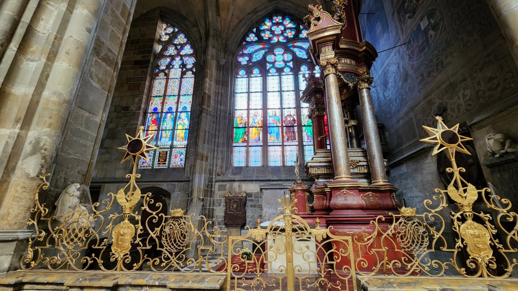 Catedral de São Vito (St. Vitus): é a atração número 1 do castelo e é a maior igreja da República Tcheca. Sua construção levou quase 600 anos. Ela abriga as joias da Coroa Tcheca e também as tumbas de santos e antigos reis.