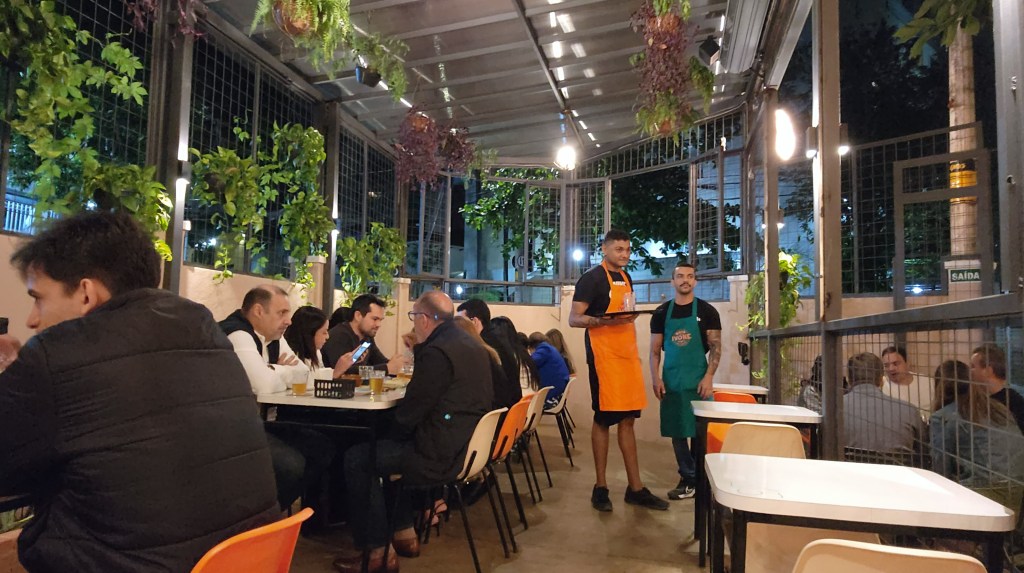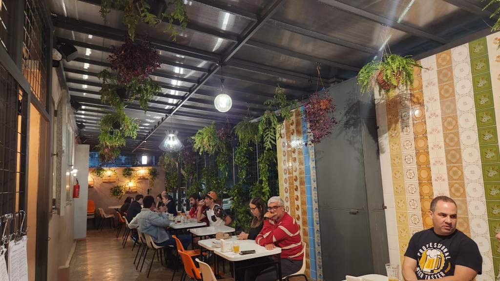 O bar tem um espaço muito gostoso, fica em uma galeria bem espaçosa e com muito verde entre as mesas. Ele combina mesas compartilhadas, mesas comuns, iluminação aconchegante e gente de todos os estilos que compartilha a mesma paixão: cerveja de qualidade. O público é bem variado: casais, turma de amigos e famílias estão por ali, brindando, se divertindo e batendo papo.