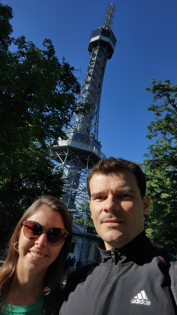 A Torre fica no alto do Morro Petřín, para chegar até seu topo é preciso andar por uma trilha (segura), por cerca de meia hora. É uma subida pesadinha. Diz que um funicular leva até ela. Não vi nada passando.