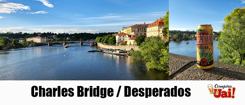 A cerveja que levei para apreciar a ponte foi a Desperados Original – Tequila, muito comum nas vendinhas de Praga.