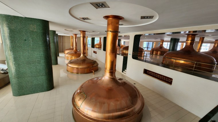 A produção da cerveja é feita ali mesmo, no andar de cima. Recomendo assistir a esse vídeo para ver como funciona a produção lá. Louco por viagem em na UFleku