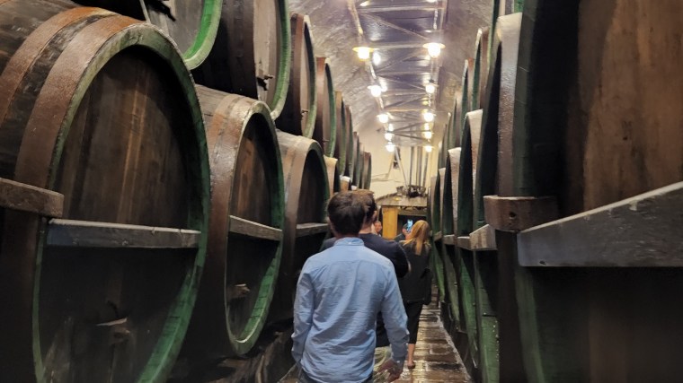 Por ali, a Pilsner Urquell fica maturando dentro de enormes barris de carvalho revestidos internamente com piche, em temperaturas bem baixas, assim com ela era feita antes.
