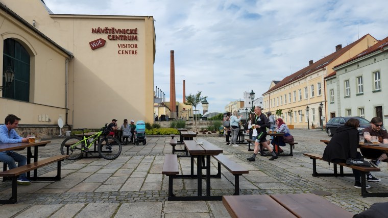 O espaço é muito grande. Ali fica o museu da Urquell, a fábrica de diversas cervejas, uma loja de souvenir e cervejas e um bar.