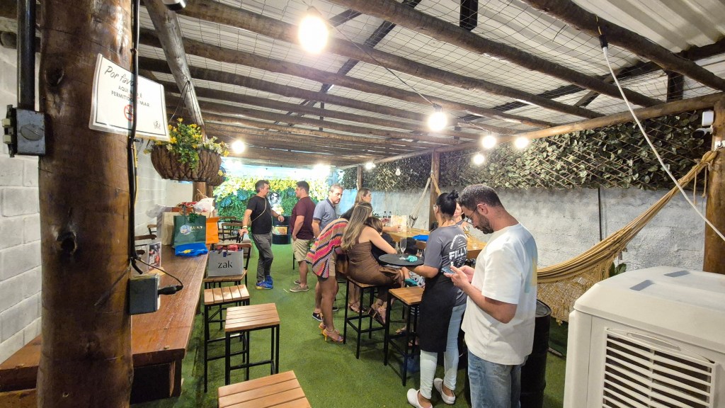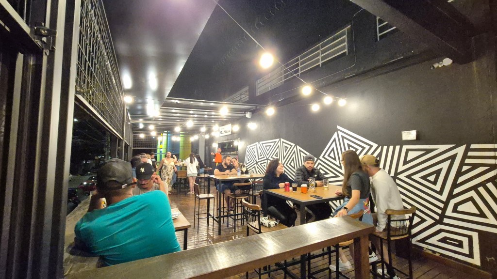 O bar tem um espaço muito gostoso, fica em uma galeria bem espaçosa e com muito verde entre as mesas. Ele combina mesas compartilhadas, mesas comuns, iluminação aconchegante e gente de todos os estilos que compartilha a mesma paixão: cerveja de qualidade. O público é bem variado: casais, turma de amigos e famílias estão por ali, brindando, se divertindo e batendo papo.