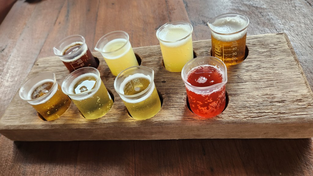 Por lá, são 10 torneiras jorrando bebidas artesanais, de qualidade e bem variadas nos sabores e nos aromas. As cervejas são muito boas e criativas. Têm as mais leves como a Pilsen com limão e a Hop Lager; as mais frutadas como IPA com mexerica e Witbier com frutas amarelas; as mais amargas, como a IPA e a Double IPA; e as escuras como a Black Lager e a Stout com whisky.