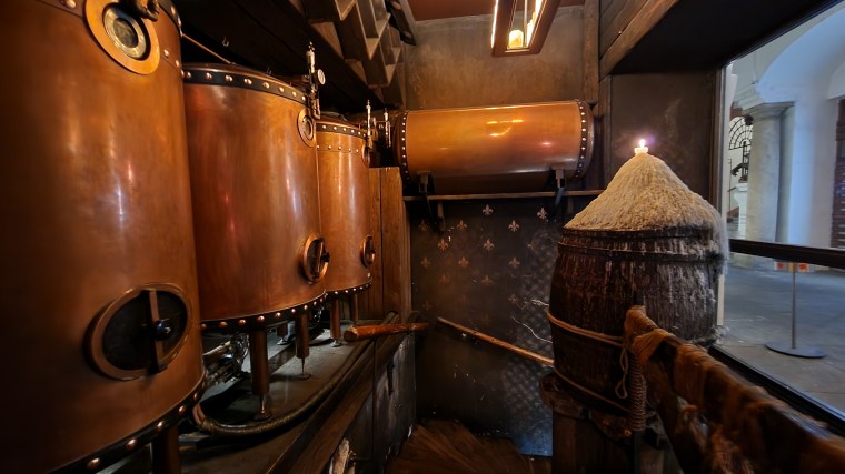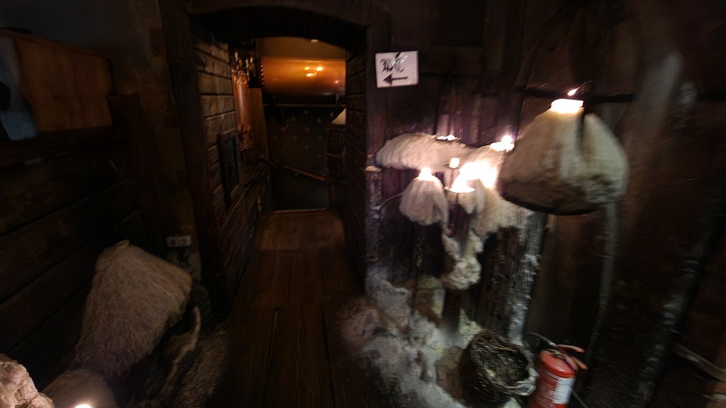 Ao entrar, você já sente a atmosfera do local, com a decoração totalmente medieval, tanques de cerveja antigos feitos de cobre e músicas daquela época.