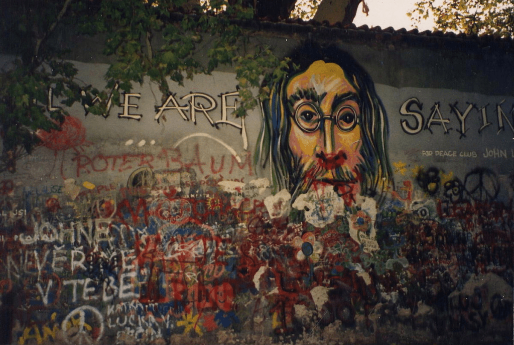 Um muro cheio de grafites coloridos, imagens e mensagens de paz, amor e liberdade, no centro de Praga. O primeiro desenho do muro surgiu logo após o assassinato do ex-beatle, em 1980, e se tornou um símbolo de liberdade durante o regime comunista. Era uma imagem do Beatle-ícone-hippie, o que a polícia comunista logo entendeu como uma forma de protesto e vandalismo.