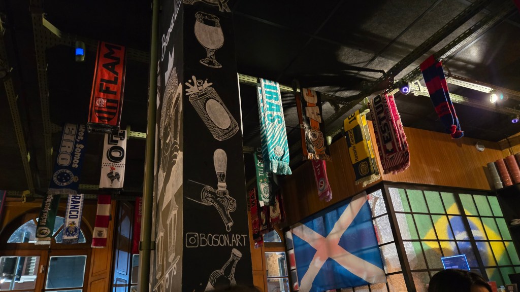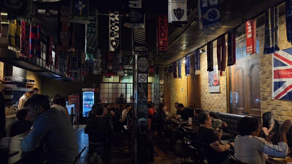 Na decoração, também existem diversos cachecóis de times internacionais e nacionais, que deixam o espaço ainda mais caricato. Além disso, por lá rola música ao vivo que vai do rock clássico ao blues, criando o cenário perfeito para um happy hour com os amigos ou uma noite mais animada em casal ou em família.