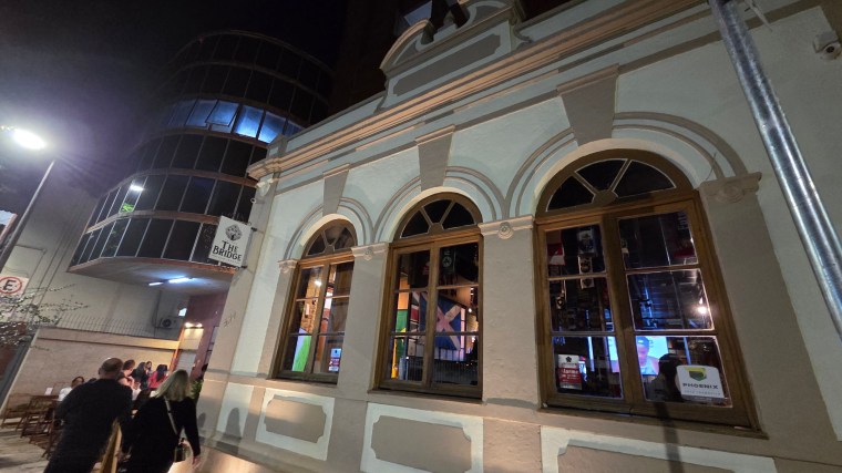 O The Bridge chama atenção logo na entrada com a fachada inspirada nos tradicionais pubs britânicos. Ao entrar, o ambiente segue a proposta: iluminação baixa, espaço compacto, aconchegante, com decoração temática remetendo ao Reino Unido.