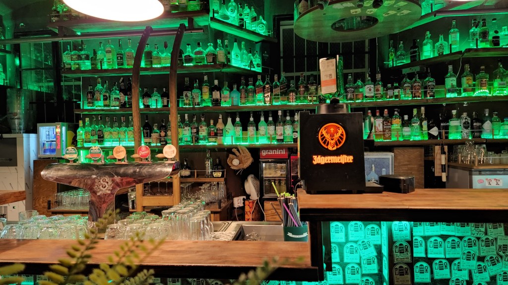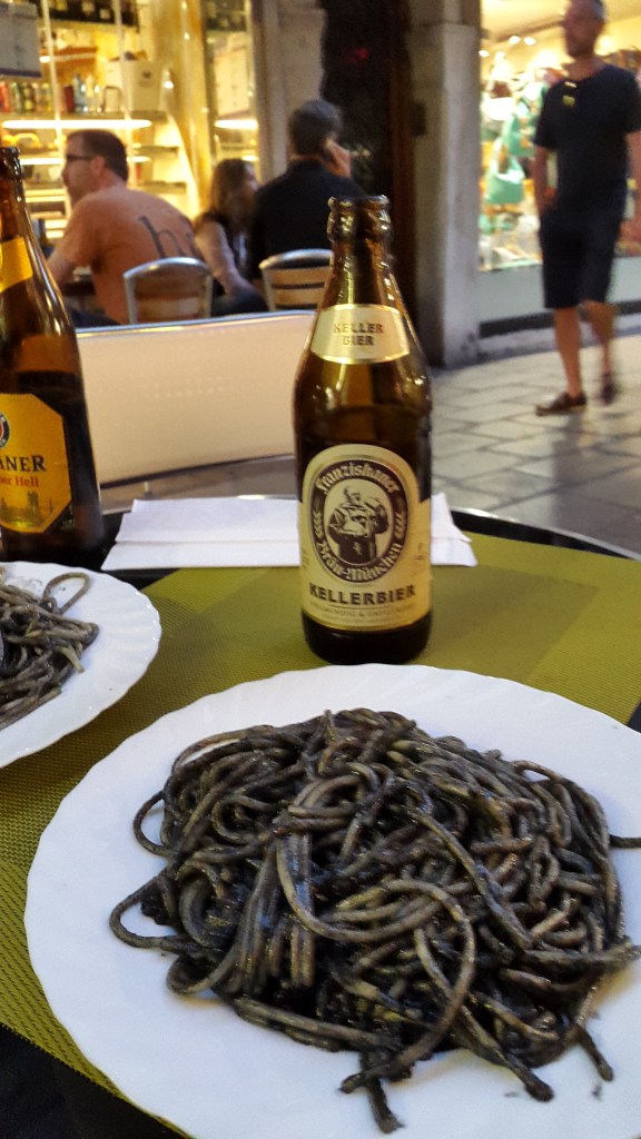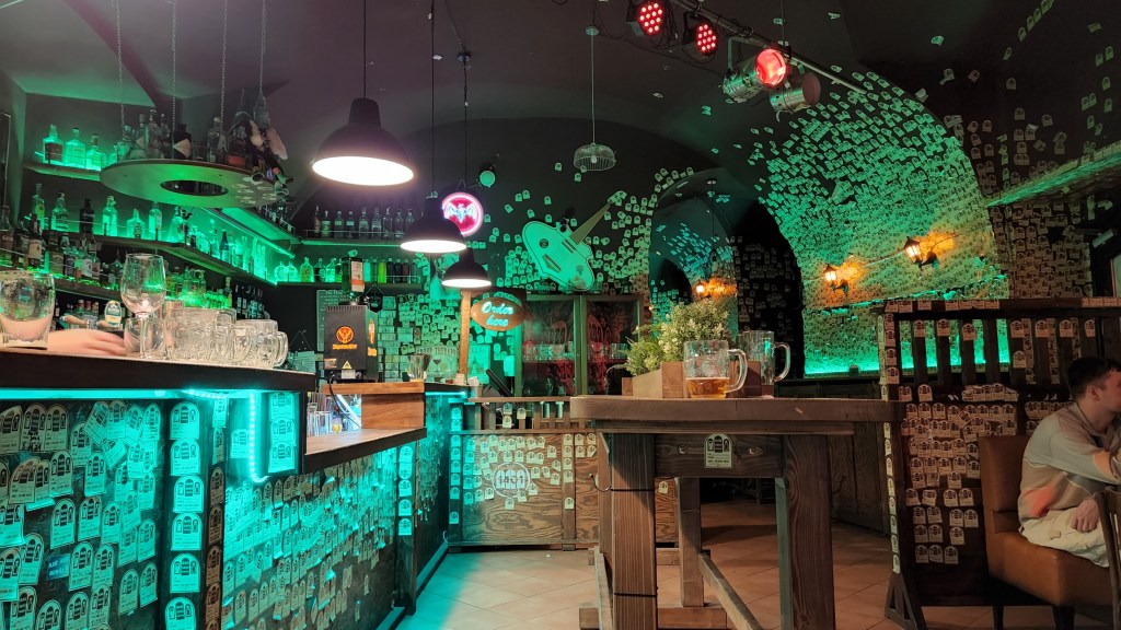 Nós bebemos essa em um restaurante chamado Gambrinus Deutsche Küche ( Gabrinus Culinária alemã). É um restaurante de comidas típicas alemãs. O local é bem aconchegante, meio escuro (como todos que fomos). Mas se preferir, tem mesas do lado de fora. Era um dos poucos que estavam abertos e que serviam comida naquele nosso horário de sempre: 22h – 23h.