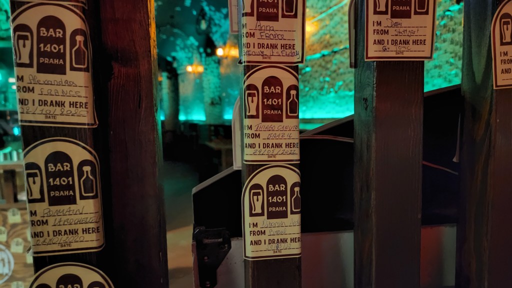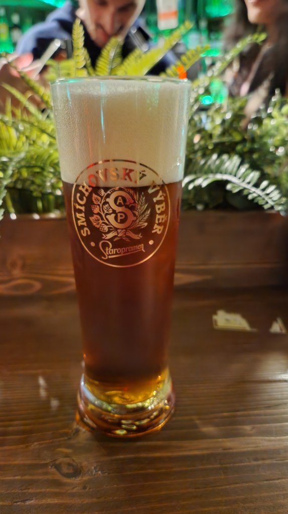 Como ganhamos um chope na Urquell por ter comprado o ingresso da cidade subterrânea, paramos no restaurante da Urquell, uma espécie de biergarten da fábrica e aproveitamos para tomar mais Urquell.