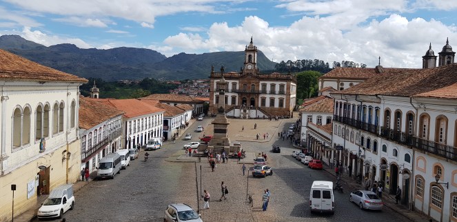 – Praça Tiradentes. Comece por ela, já que, aqui, concentram restaurantes, cafés e alguns pontos turísticos de Ouro Preto. Também há diversos guias se oferecendo para fazer os passeios. Eu fiz o meu próprio roteiro, então não precisei de nenhum guia.
