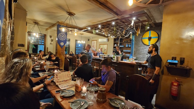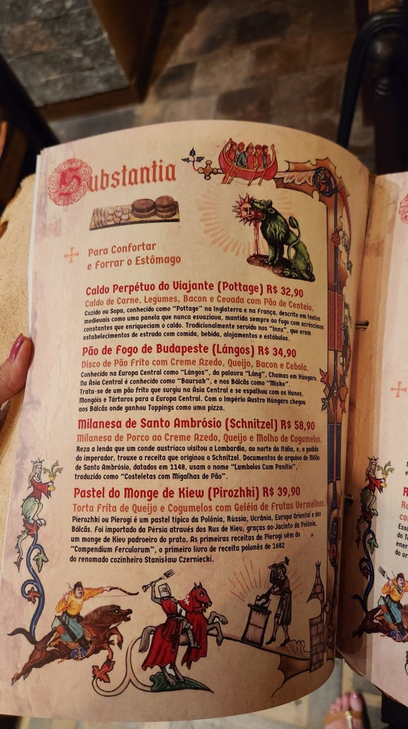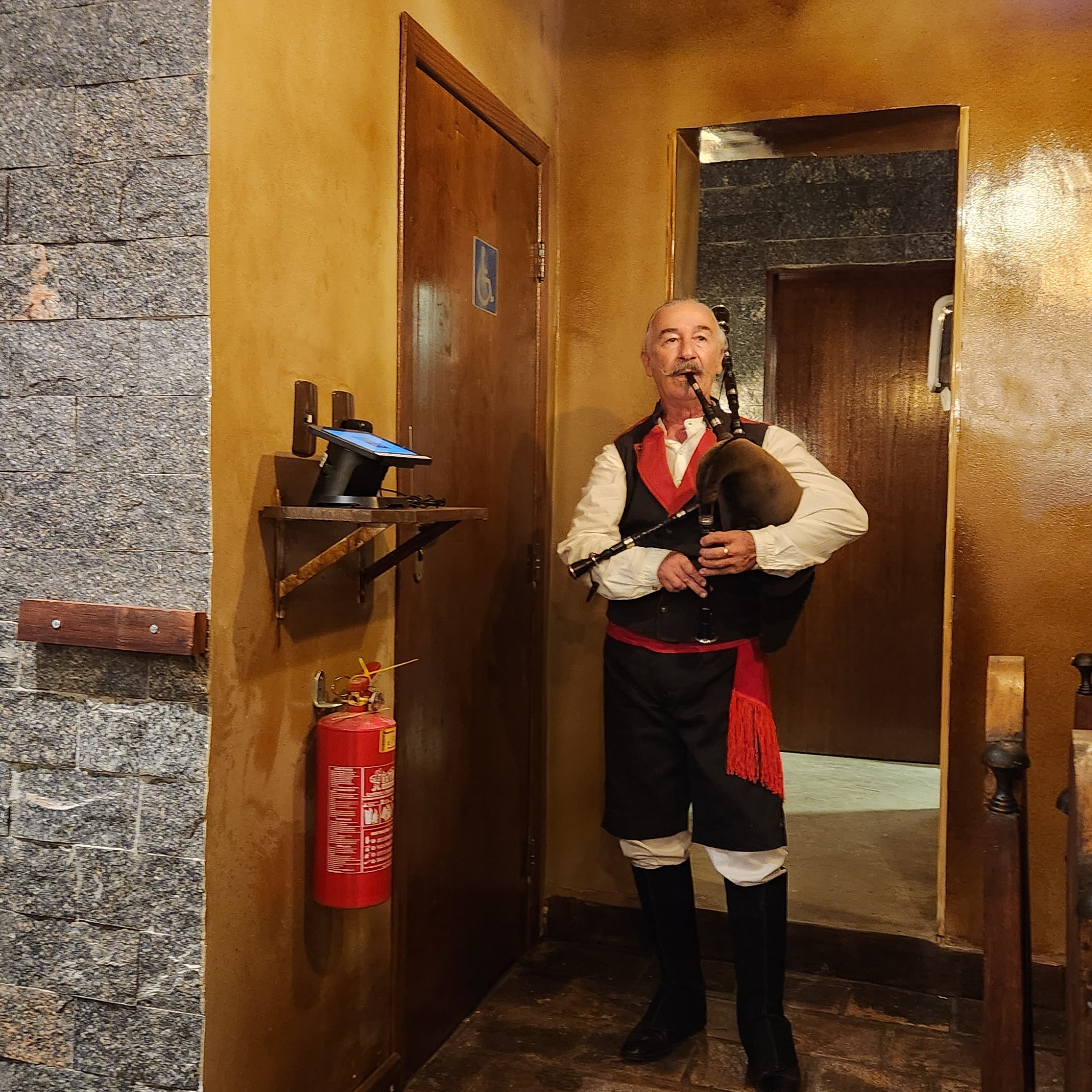 Além do ambiente agradável, fica um músico tocando acordeom com músicas típicas e caminhando entre as mesas e de um ambiente para outro. O garçom fica de olho no seu copo. Acabou o último gole, ele já repõe. Então, se não quiser beber muito, fica esperto! Além disso, passa garçons o tempo todo oferecendo um licor, que dizem ser fortíssimo, chamado schnaps. Não quis provar.