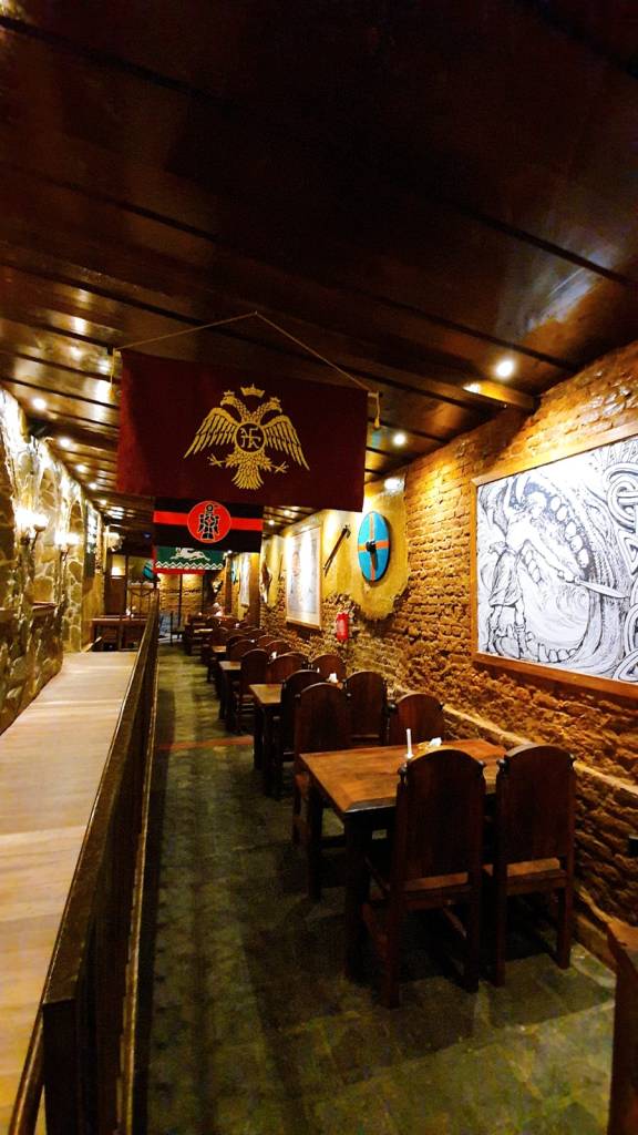 Ao entrar, você se sente não, você está em uma taverna medieval com algumas decorações da época e bem espaçosa.
